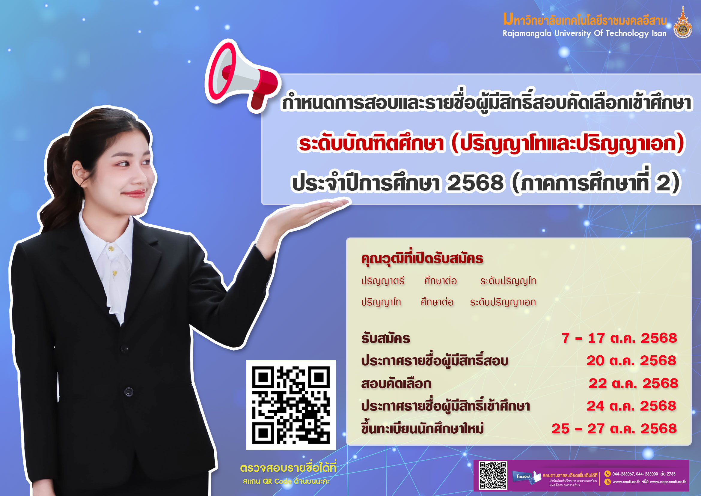 ประกาศรายชื่อผู้มีสิทธิ์สอบคัดเลือก ระดับบัณฑิตศึกษา ภาคการศึกษาที่2 ประจำปีการศึกษา 2568 Powered By EmbedPress คณะบริหารธุรกิจ กลุ่มระดับปริญญาโท ประกาศรายชื่อโปรดคลิกที่นี่!! คณะวิศวกรรมศาสตร์และเทคโนโลยี กลุ่มระดับปริญญาโท ประกาศรายชื่อโปรดคลิกที่นี่!! กลุ่มระดับปริญญาเอก ประกาศรายชื่อโปรดคลิกที่นี่!!