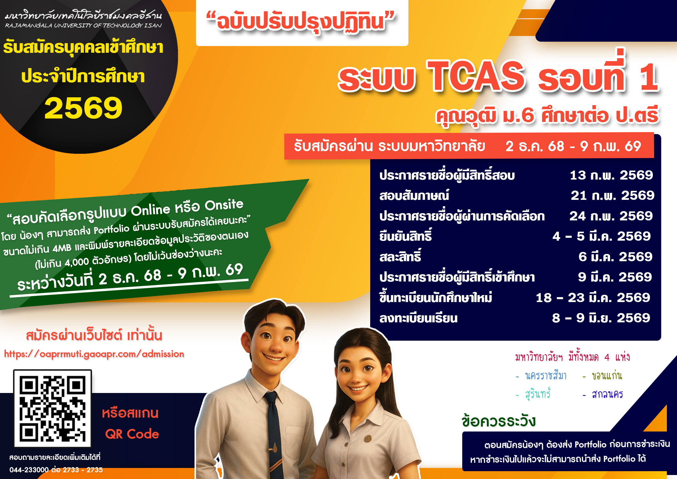 เปิดรับสมัครนักศึกษาใหม่ ระบบ TCAS รอบที่ 1 แฟ้มสะสมผลงาน (Portfolio) ประกาศรับสมัคร ปี 2569 CH1 รายละเอียดสาขาวิชาที่เปิดรับ โปรดคลิกที่นี่ คลิกที่นี่ เพื่อเข้าสู่ระบบสมัคร วิธีการชำระเงิน